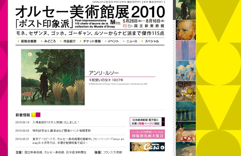 それでも、やはり素晴らしい作品は素晴らしいのであって、そこに見る目を集中すれば、見る価値はある。これをきっかけにして、より充実した作品を見る手がかりにすればいいのかもしれない。展示作品の中で、個人的にはアンリ・ルソーの『蛇使いの女』が印象深かった。大きな作品で、ファンタジックな世界に引き込まれるような印象。