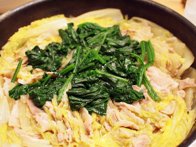 • ゆがいて準備しておいたほうれん草を入れ、火をつけて煮立たせ、ほうれん草があったまればOK。