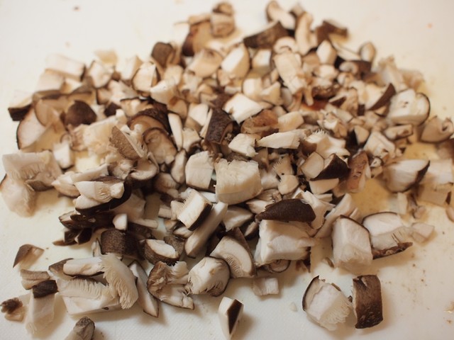 ハーブは別。香りを活かすため。 - しいたけは大きめのみじん切り。食感を出すため。