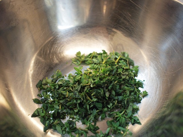 一緒でかまわない。簡単。 - タイムは別にみじん切り。これもあまり細かくしすぎない。