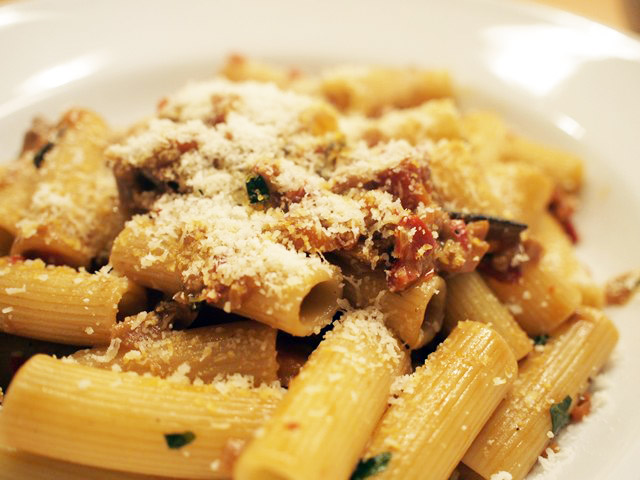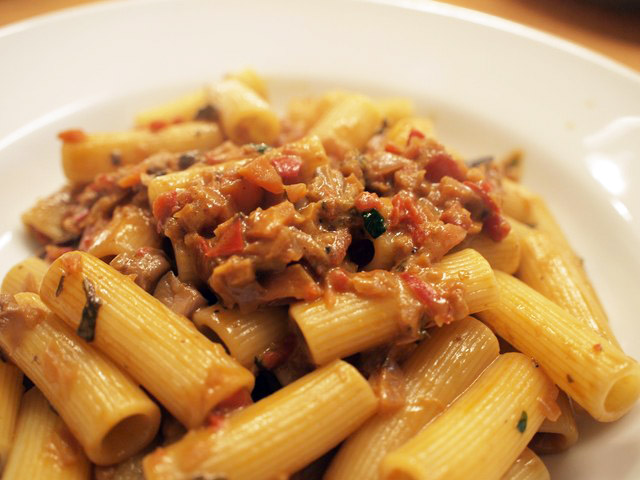 - パスタ 何でもいいけど、今回はリガトーニ。(筋の入った円筒形のショートパスタ)