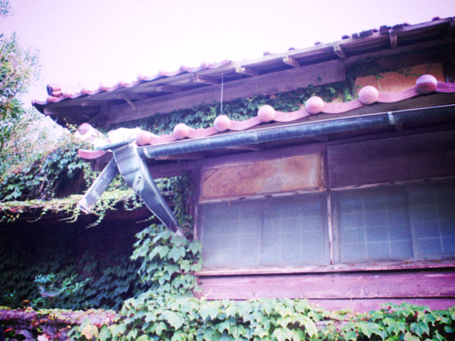 自然に徐々に飲みこまれようとしている廃屋。トイカメラ風に。