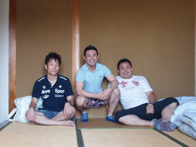 で、翌朝。同級生を写真レポートせよとのじょにおの命令で。(笑)左からまー、俺、う~たん。写真を載せてもプライバシーがどうのとか顔バレがどうのとかグダグダ言うような連中でないのがありがたい。(笑)