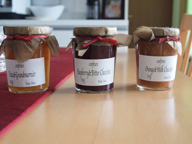 お気に入りのパティスリーがあって、この間のパーティーのケーキもそこでオーダーしたのだが、ジャムもおいしいので買ってきた。左からゆずとグランマルニエ、ラズベリーとビターチョコレート、オレンジとミルクチョコレート。真ん中はすでに食べてみたが、おいしい。上質なパンがあれば、それだけでおやつになりそう。添加物もなく、お勧め。