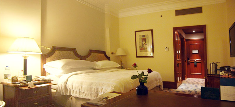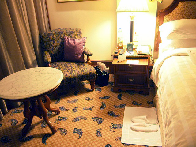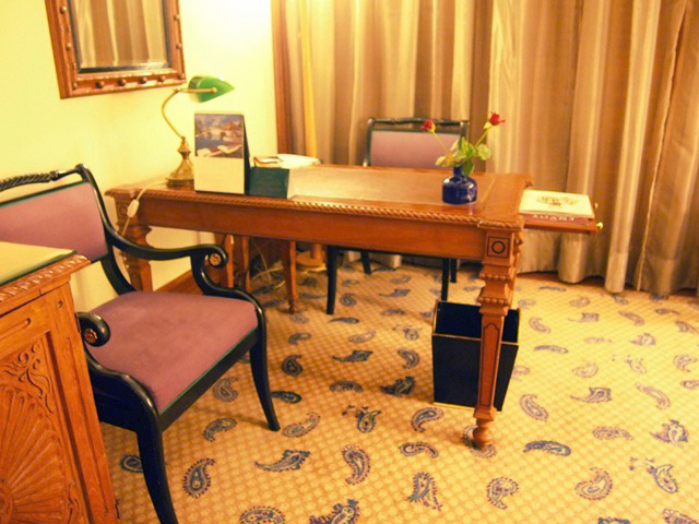 チェックインしてインドなまりの英語が聴きにくいなと思いながら、部屋へ。部屋は折上天井のクラシックかつ豪華な雰囲気。