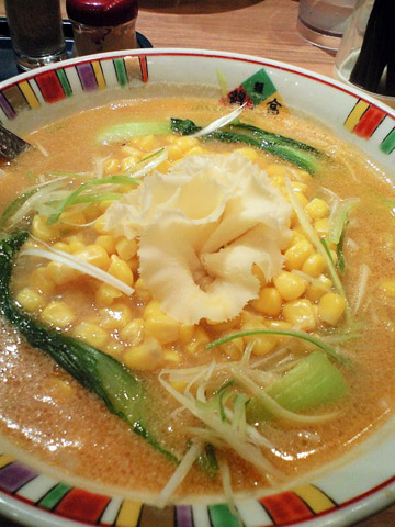 新千歳空港に着き、出発フロアに行くと、やはり土産物屋はどこも盛況。そしてやはり圧倒的に食べ物が多い。北海道は土産物でも割とおいしいヒット作が多い。買い忘れたものをいくつか買って、風呂の前にラーメン。ラーメン屋はどこも活気があった。その中で「麺屋開高」という店を選択。俺もじょにおも実はラーメンにはそれほど思い入れはないのだが、たまに食べる機会があるとじょにおは味噌ラーメンを選ぶことが多いので、やはり食べておかねばと。味は普通にラーメンとしておいしい。味噌というともったりした印象があったが、そうでもなく、するする食べられる。コーンはたっぷり入っていた。