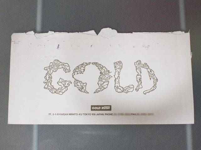 そういえばと思って昔のフライヤーの束をひっくり返して見たら、ゴールドの招待状が送られてきた封筒があった。