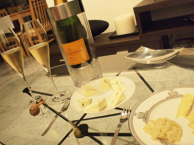 サヴァラントリュフチーズは期待していたのだけれど、正直「?」な感じだった。トリュフの香りがまるでしない。サヴァランのフレッシュさが完全に優ってしまっていて、はっきり言ってフィラデルフィアな感じ。結構な値段がしたのだが、勉強代だった感じ。他はおいしかった。この時のシャンパーニュは、月1本のテイスティング以外に飲めるようストックしておいたVeuve Cliquot Ponsardin Brut Yellow Label。(前に飲んだ時に複数本買っておいたのがまだ飲んでいなかったのか、その後また買い足したかは忘れた 笑)