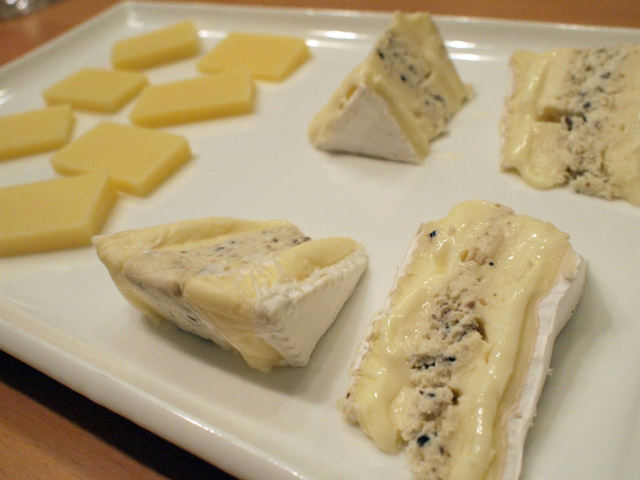 その前、別の週末に、トリュフクリーム入りのチーズ=トリュフブリーを食べたのだが、それはトリュフの馥郁たる香りがして、↑のサヴァラントリュフチーズよりも遥かにおいしかった。その時は、夕食を用意した時に例によって我が家の定番Piper-Heidsieckの栓を抜いて、食事が終わっても残っていたPiper-Heidsieckとともに食べた。どうも幼少時からトリュフのおいしさは感じにくくて、テリーヌに埋め込まれていても、パスタに削ってふりかけられていても「別に…」と思っていたのだが、トリュフブリーはおいしかった。どうやら、キノコの類がおいしさを引き出されるのは、クリーム類との組み合わせによるようだ。(アミガサタケ然り、ポルチーニ然り)
