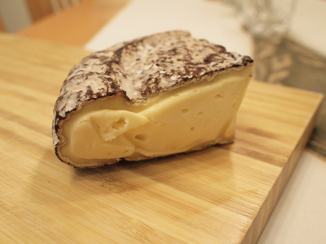 当然グラスを買ったら試してみたくなるもの。(笑)そこで使い初めを。チーズも用意した。ブリア・サヴァランというフレッシュチーズに夏トリュフをはさんだもの、ブルゴーニュのワインで洗って熟成させたトメット・オ・ボジョレー、そして36ヶ月熟成のパルミジャーノ・レッジャーノ(我が家では定番、冷蔵庫に常備)。