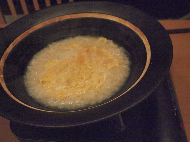当然、うまい。身がたっぷりのふぐちりは最高に贅沢。シャンパーニュもおいしく進む。ふぐをたらふく、という状態だが、〆をやらないことには。最後はやっぱり…