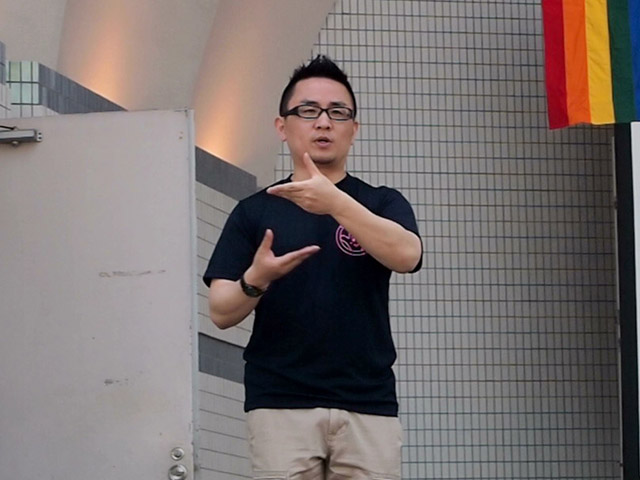 友人のあべおは、ボランティアでステージでの手話劇に参加していた。