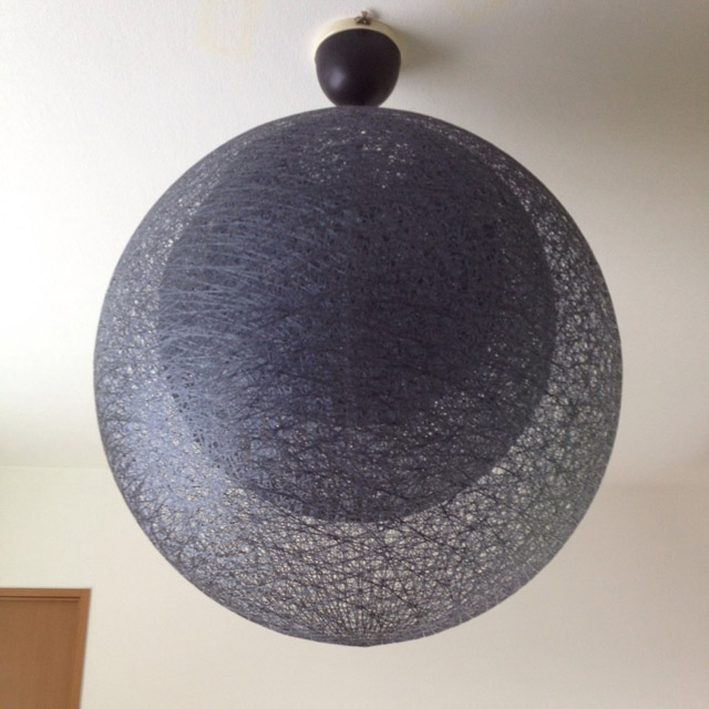 グラスファイバーと樹脂から成る繊維で作られた繭のようなシェードが大中小3つ重ねてある作り。これはインテリアショップでじょにおが見かけて直感的に購入を決めた物なのだが、調べると伊東豊雄(いとうとよお)という建築家のデザインの物だそう。
