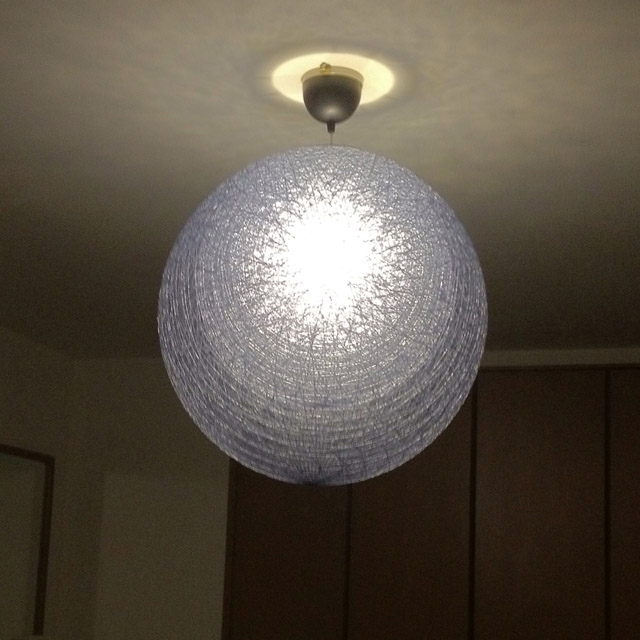 この土曜日は↑の試乗に先立つ午前中、もう1つ予定があった。寝室用の照明が届いたのだ。これは、俺の書斎のライトとライトオブジェを買った時に同時に買った物。吊り下げるコード長を調節してもらうために納品が後になった。寝室には便宜的に前にリビングで使っていた照明を取り付けてあったのだが、ずっとそのままになってしまっていたので、これを気の利いた物に取り替える趣旨。