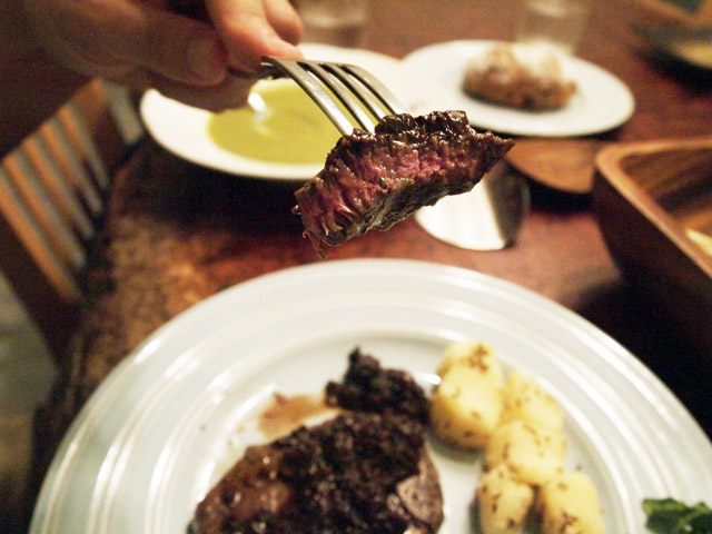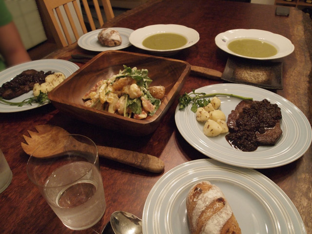 土曜の夜はちょっと頑張って料理をした。あまりうちではステーキを焼かない。家では健康志向で、肉を使うならなるべく脂身の少ないものを選び、肉よりは魚を選択することが多いので。健康より美食という時には、外に食べに行ってしまう。しかしまあ、たまにはいいかと、さしの入り方のいい肉を買って料理することにした。