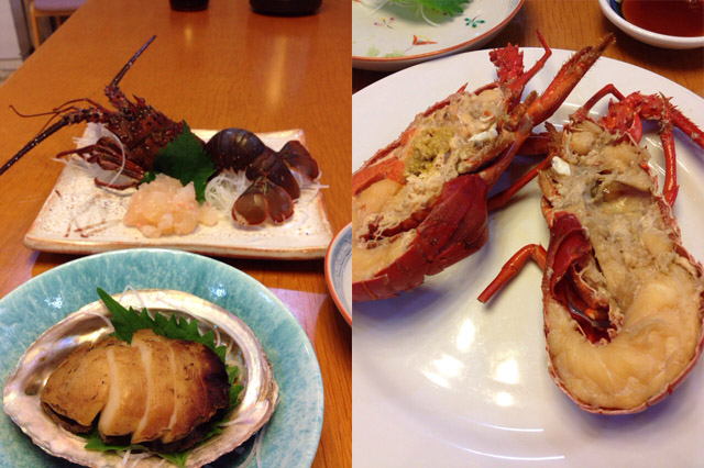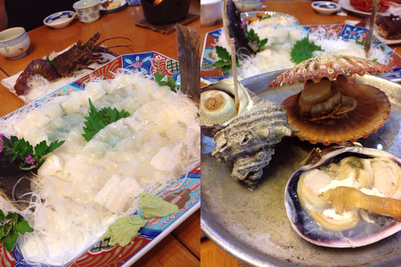 宿は昔は保養所だったところを、地元の魚の仲買人が宿として経営しているようで、建物はいかにも昭和といった感じ。食べ物に期待したところ、食べ物はさすがに海産物の名産で名高い土地、東京で食べたらいくら?という感じの物がたっぷり出てきて満足。