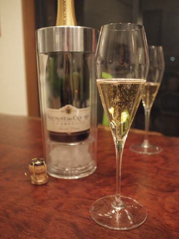 このBeaumont des Crayéres Grande Reserve Brut(ボーモン・デ・クレイエール グランデ・レゼルヴ・ブリュット)はBeaumont des Crayéresのスタンダード。シャンパーニュの中では値段が手頃。ネットショップでは3000円前後で手に入る。Beaumont des Crayéresは札幌のミクニでミレジメ(ビンテージ)のロゼを飲んでいて、まずまず良かったので、いいのではと予測。