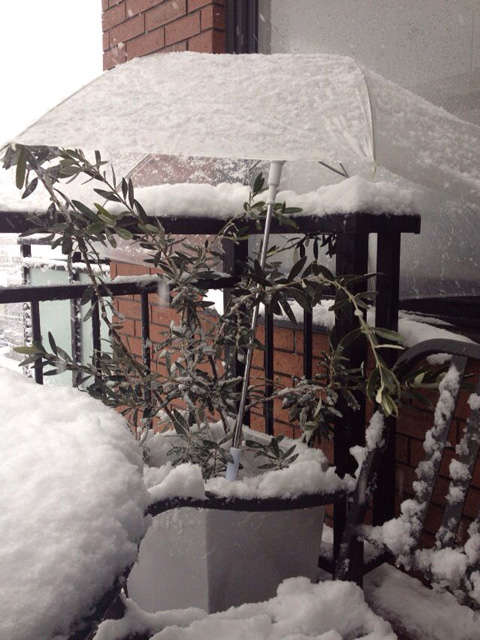この後は、雪で枝がしなだれていたオリーブの織部さんに傘をさしかけてやったり、その傘に屋根から滑り落ちてくる雪の音に時折おののいたりしながら、ダラダラ・ゆるゆるとすごす。