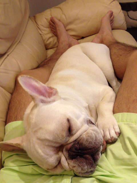 俺に寄り添っていると大体数分で眠る事が多いので、しばらくして寝入ったプットニョスをそのままにして、お茶を入れる等他のことをしたり、書斎に行ってこもって何かしたりする。すると、それに気づいたプットニョスが書斎に近づいてくる足音がして、入れてやると大抵机の下に来て、足元で寝る。足を少し外すと、起きてポジションを変え、またくっつく。