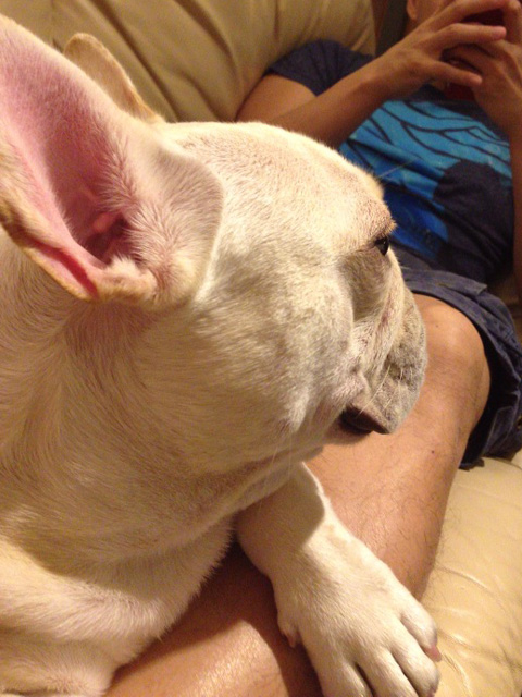 先の、プットニョスが寝ているからとリビングにそのままにして俺が書斎に移るとリビングからやってくる足音なんかは、チャッチャカチャッチャカとえらく急いでいて、「大変大変、寝てた寝てた、JOEのとこに侍らなくちゃ」といそいそやってくる音に聞こえたりする。本犬は本犬なりに気を使っているのかもしれない。