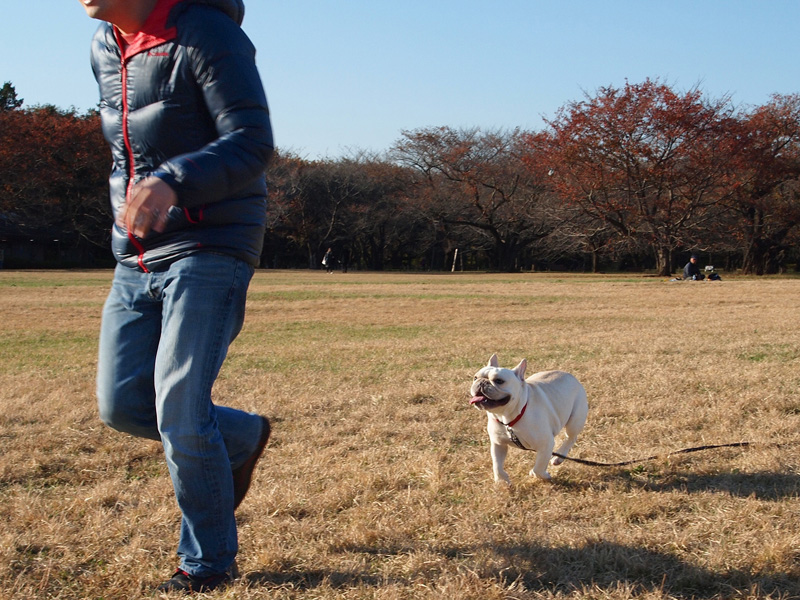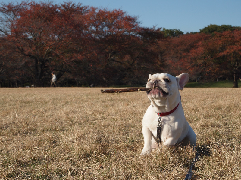 時々訪れるここ、有料で駐車料金もかかるせいか、来ている人の品がよい。犬連れの人も概ねマナーがよい。そして何より広くてゆったりしている。この時期は紅葉も美しく、出かけるにはちょうどいい頃合い。涼しく、日中は寒くもなく、寒暖に弱いフレンチブルドッグが外で遊ぶには好適。