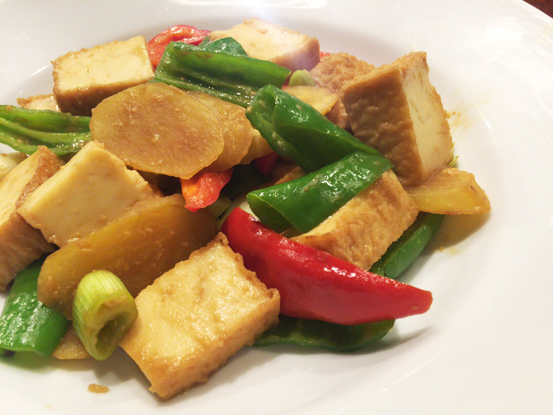 それぞれの材料を切って、味噌、酒、みりんを合わせた調味料で炒めた一品。さつまいもは最初中火で焼くようにゆっくり炒めるとほっくり火が通っておいしい。青みは普通のピーマンでやってもいいのだが、ちょっとした味のアクセントになるので万願寺とうがらしを使った。