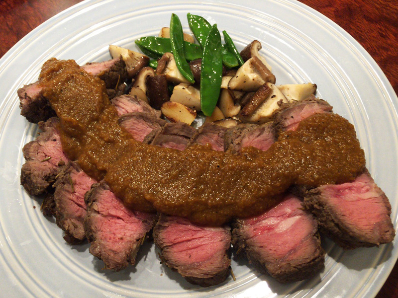 かたまり肉を料理して出すと