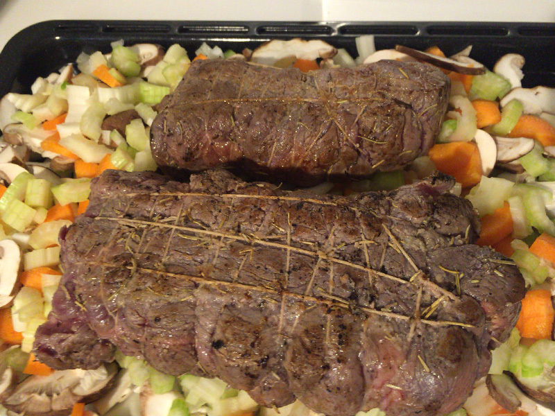後でグレイビーソースに使う香味野菜も風味がアップします。