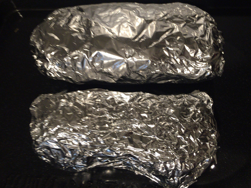 肉をアルミホイルでぴっちりくるんで、