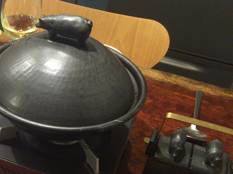 鍋にも薬味入れの蓋にも豚が!