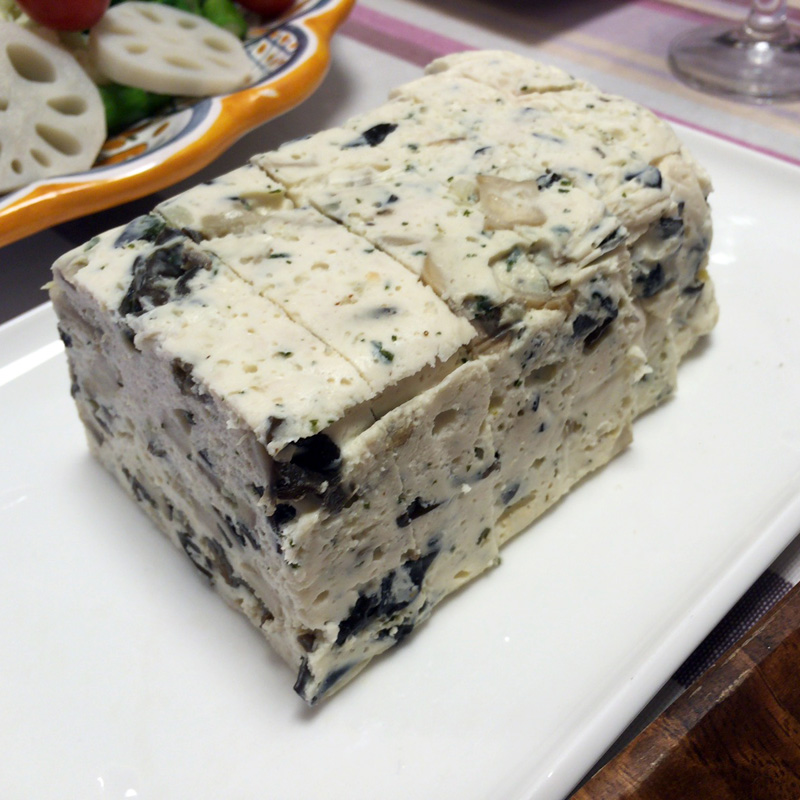 テリーヌは鶏胸肉と和風きのこのテリーヌ。作り方はこちらを参照。なお作り方は下記の本を参考にした。