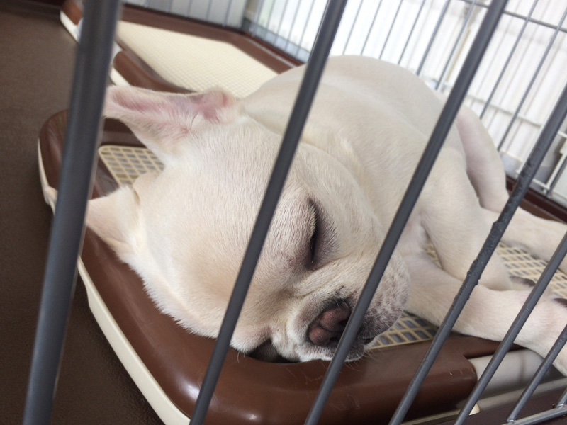その甲斐あってか、最近では要求吠えがようやく少なくなってきた。そして、午前中にはひと息つくと寝る姿が見られることも多くなってきた。子犬の成長は睡眠あってこそ。いい傾向だ。