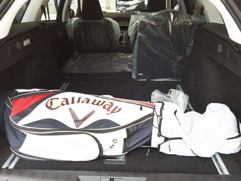 308のトランクは広くて使い勝手が良さそう。ゴルフバッグが横置きできるのが売り。308を選ぶ人はゴルフをするライフスタイルの人とは思えないが…。