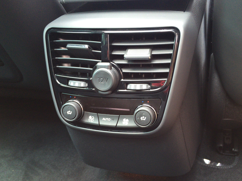 508はプジョーのトップレンジだけに、後席にも左右独立で温度調整のできるエアコン吹き出し口が備わる。