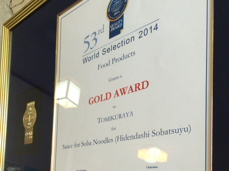 モンドセレクションの賞状は初めて見た。モンドセレクションというと最近は揶揄のネタにしかなっていない印象だが、ここの蕎麦つゆは確かにおいしかった。節の風味が香り高く、しつこくない。販売もされていて、その瓶を見ると、当然添加物は一切なし。