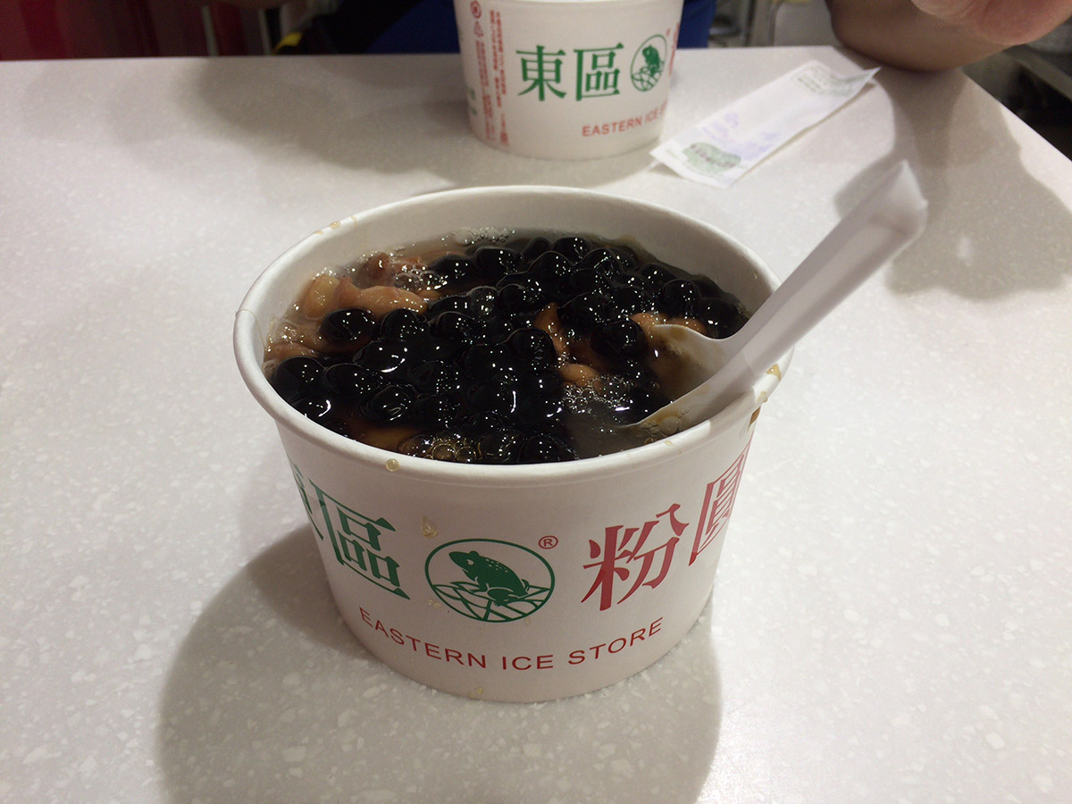 ここを見ただけではまだ時間があったので、ちょっと離れた所へ行ってみようと、また地下鉄に乗り、今度は台北101ビルの北西にある『東區粉圓』へ。ここはスイーツの店。ホットもアイスも頼める。タピオカ、豆など、お好みの具材を選んでホットかアイスかも選べる。ただし、基本ホットで食べられる具材をアイス仕立てにすると、キンキンには冷えない。