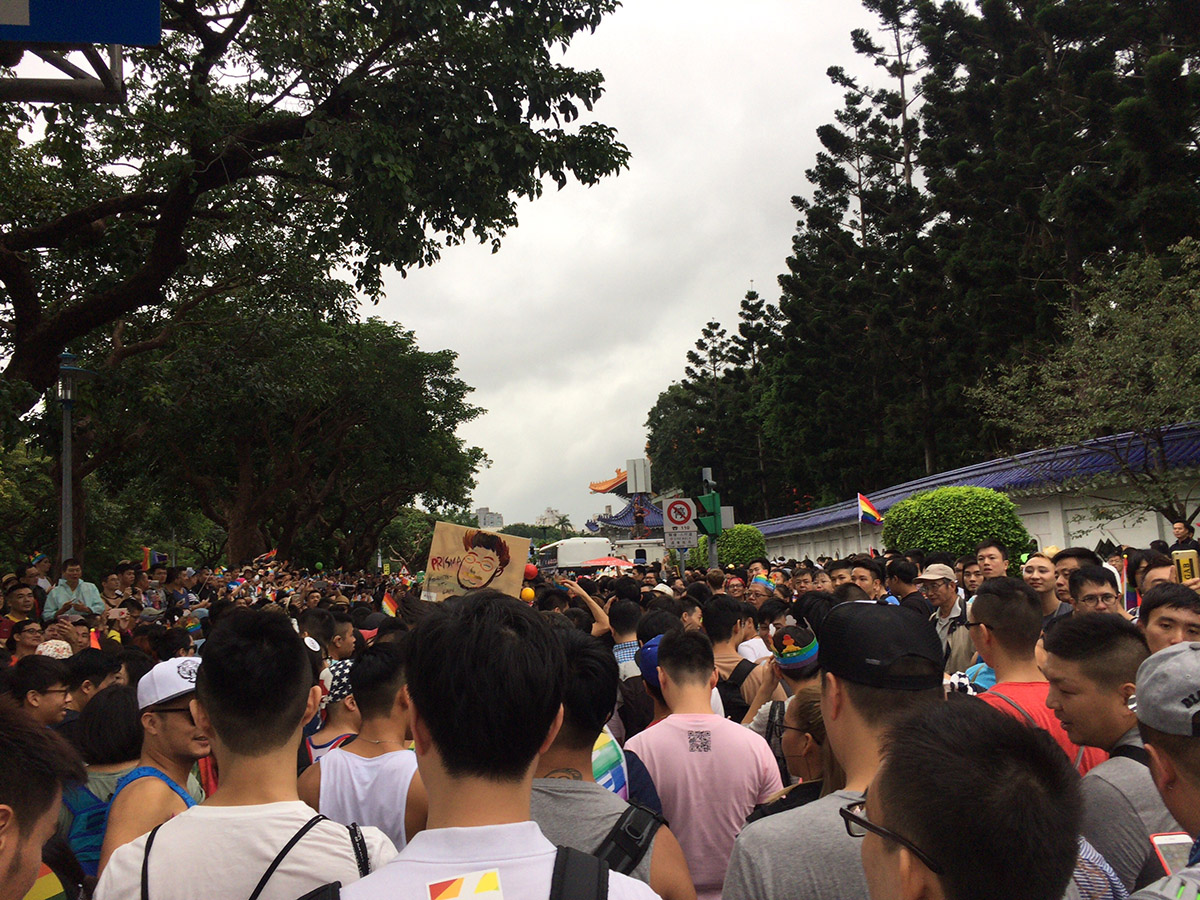 そんなこんなしている間にプライドパレードの集合時間が近づき、また電車に乗って集合場所の台北府城 東門(景福門)へ。最寄り駅から既に人がいっぱいで、熱気もすごい。