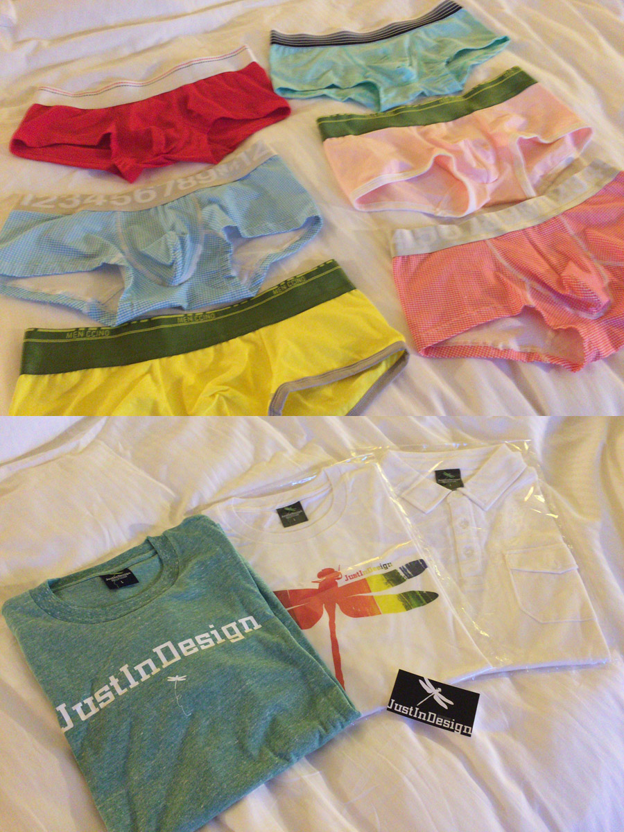 パンツ(パレード協賛企業のではない)と、トンボのマークがトレードマークのシャツ。