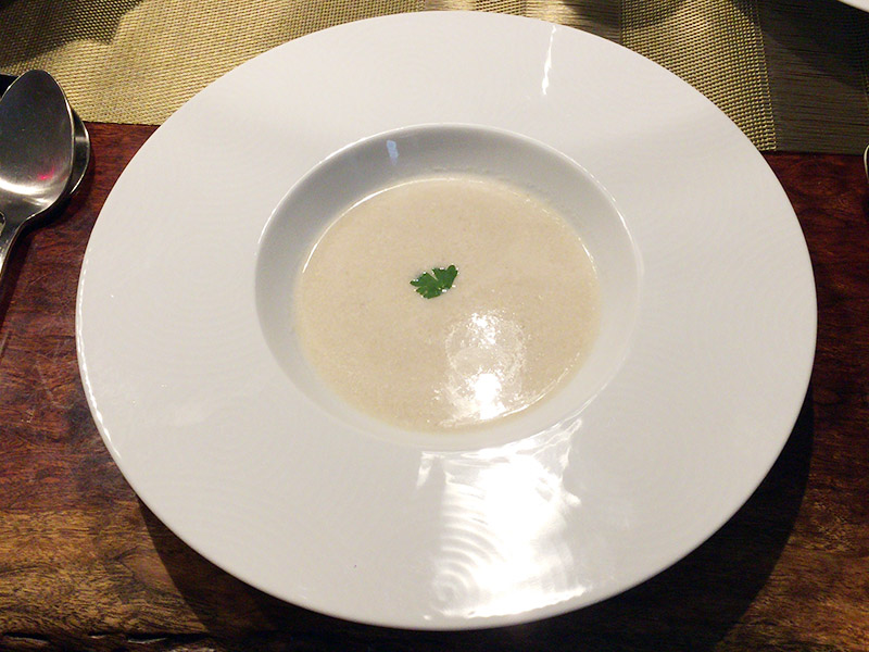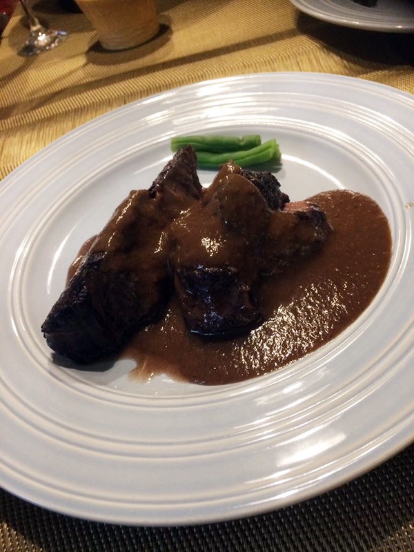 これはお試しで買ってみたもの。Philippe Gamet Rose de Saignée Brut(フィリップ・ガメ ロゼ・ド・セニエ ブリュット)は、その名のとおりセニエ(果皮を浸潤させて色をつける製法)で作られたロゼシャンパーニュ。セニエだと普通オレンジがかったサーモンピンクに淡く色づけられた物が多いが、これは非常に色が濃い。味にはタンニンを感じるほどで、結果、メインの肉料理でもシャンパーニュで通すつもりで選んで正解。ちなみにピノ・ムニエ100%の個性派。ドサージュは8g/l、熟成期間は最低35ヶ月。