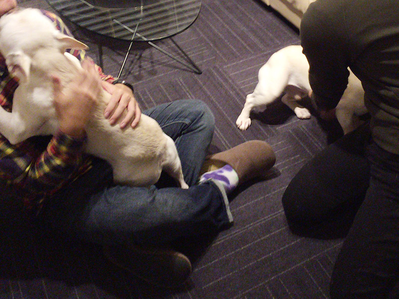 犬達は基本いい子にしていたが、自分達をかまってくれるお客さんだと見越して時々眺めに来ていた。