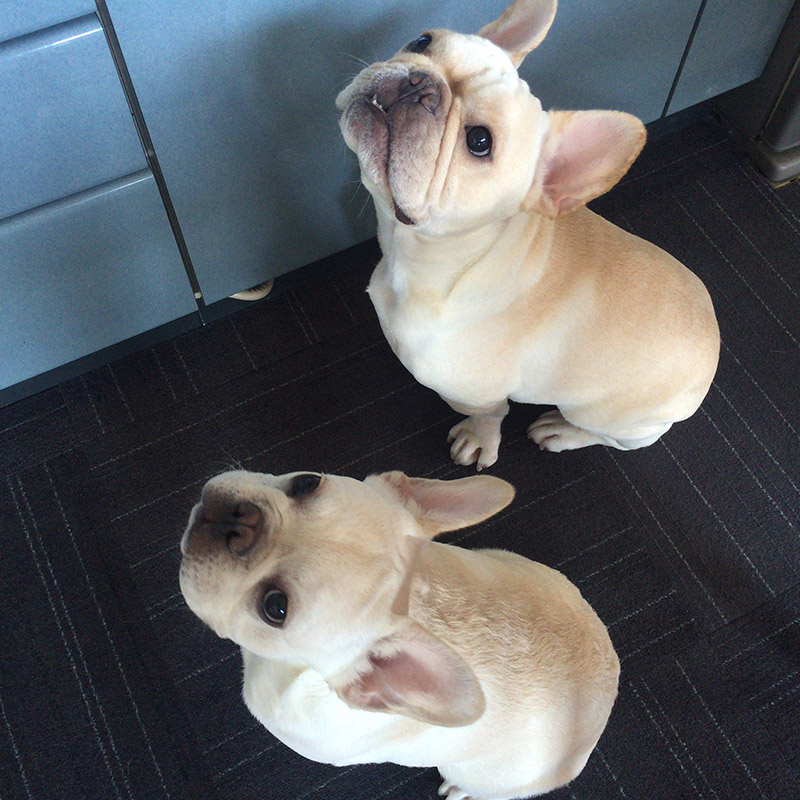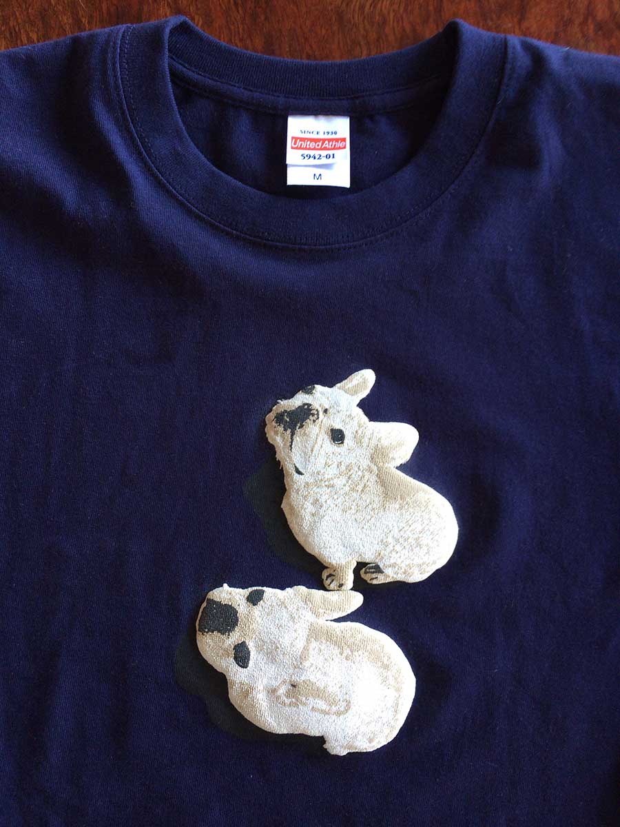 幸い、このTシャツは一番人気だったとか。飼い主的にはモデルになったうちの犬達がかわいいからと思いたいが、きっと昨今のフレブルブーム+霧彦のデザインセンスのせい。(笑)