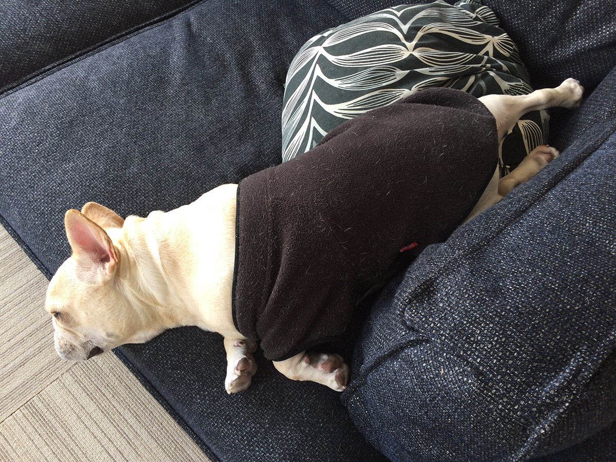 今日は散歩も拒否せず普通に歩き、食事も便通も普通ながら、ドライフードオンリーの食事を夜与えたら、おそらくその後の水の飲みすぎで、俺がジムから帰ってきたらカーペットに吐いていた。内容物はフードはほとんどなく、水だけだったか
