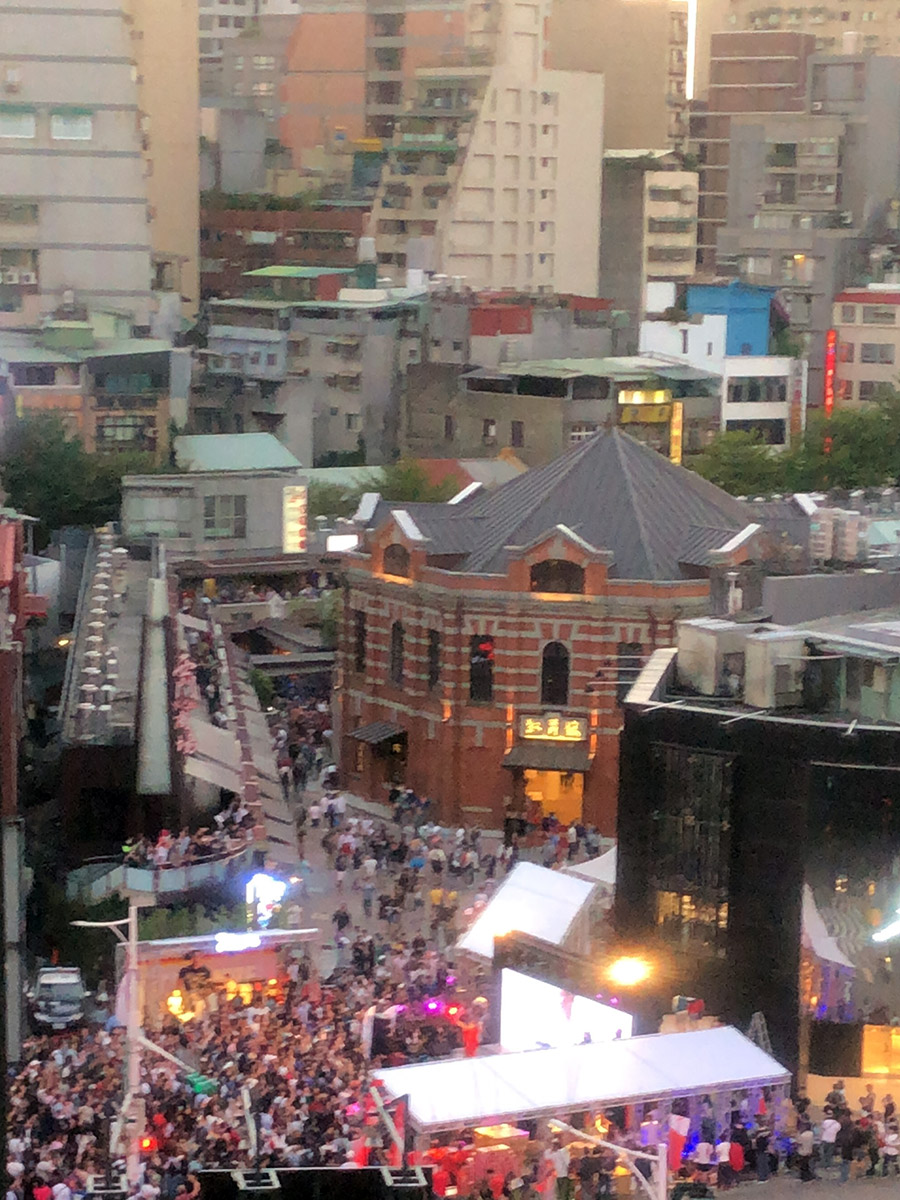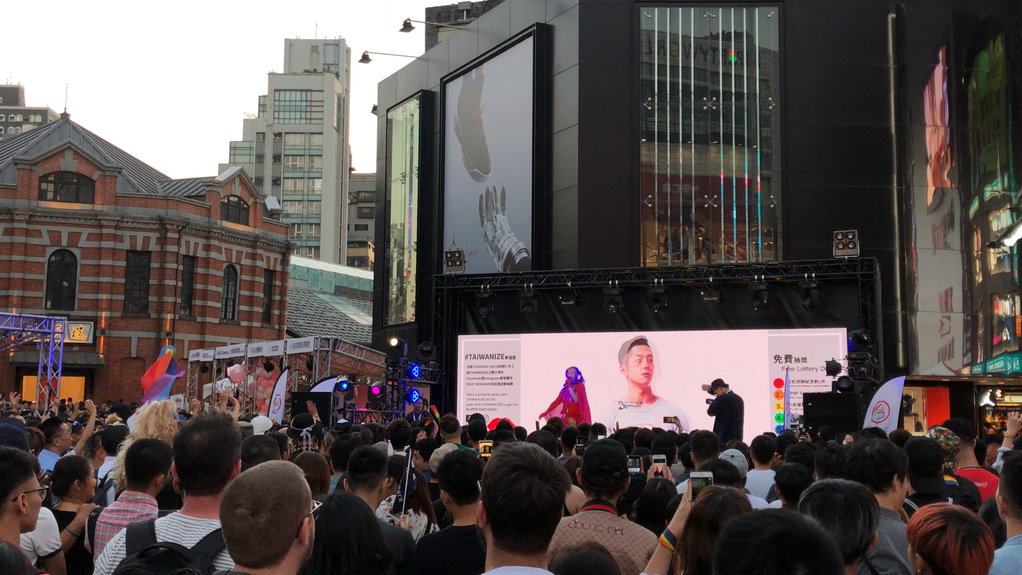 台北にしては肌寒い気温の日だった。しかし、延々と続く列を、参加して長時間歩く人々の熱意に敬意を表して最後まで見届け、一旦よっさんと別れ、ホテルのある西門へ戻る。西門にはブースが設けられていて、パフォーマンスが繰り広げられていた。