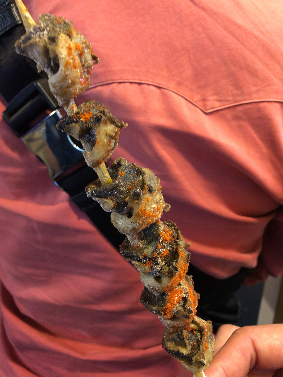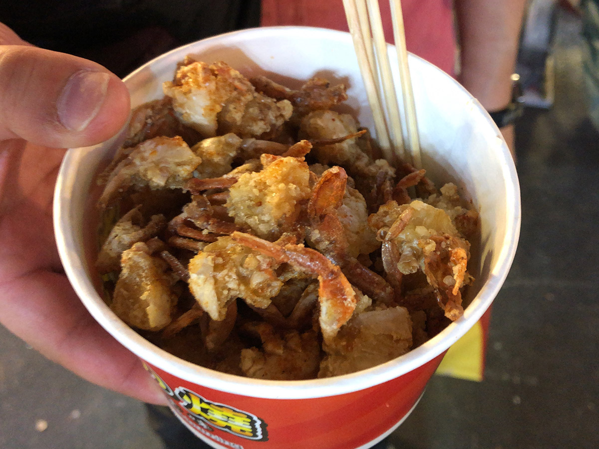 赴いたのは、饒河街観光夜市。士林と共に大きさで有名な夜市で、複数回台北を訪れたことのあるよっさんも行ったことがないというので、ここに行ってみることにした。土曜日の夜ということもあって、とても賑やか。