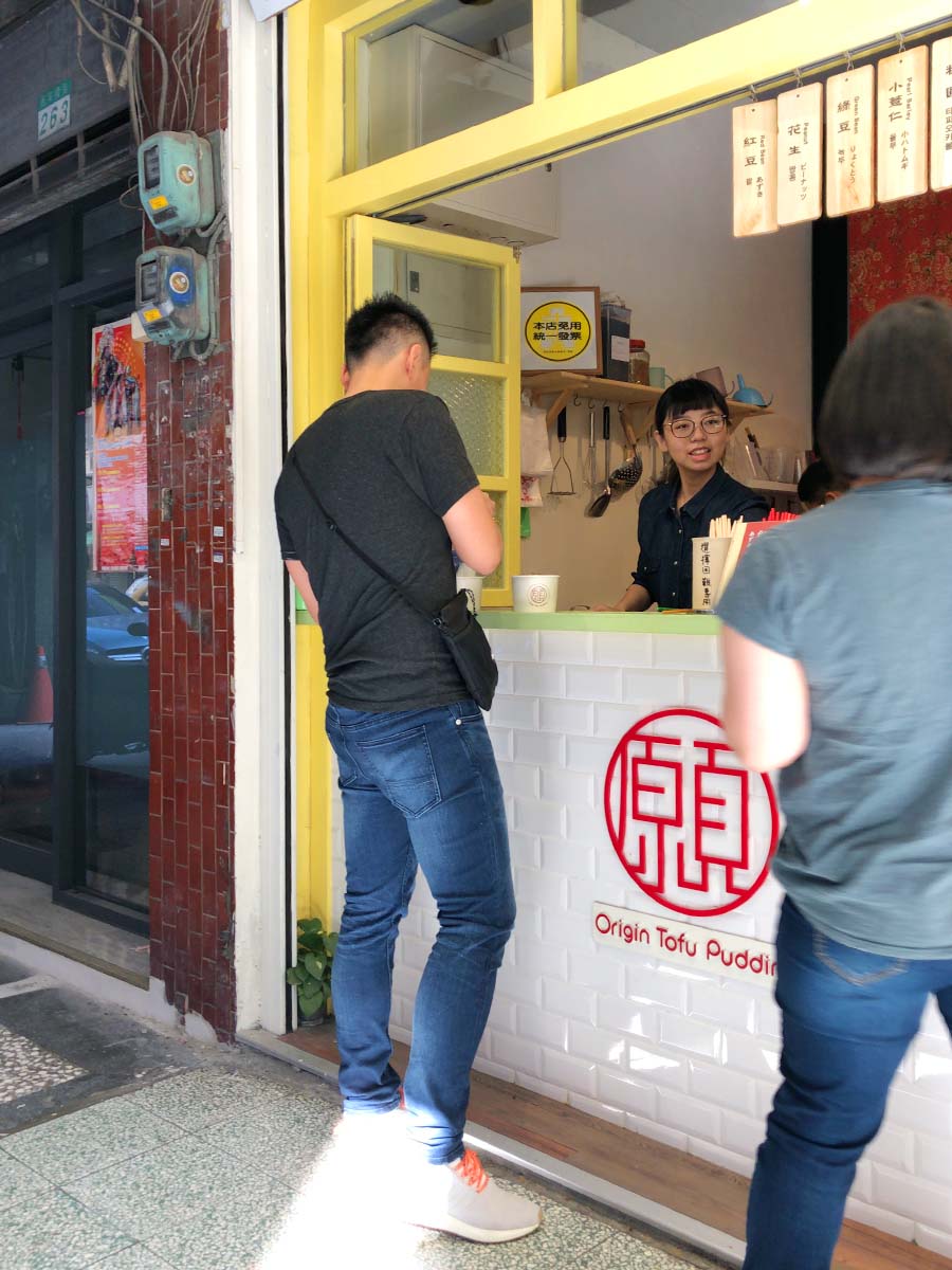 やっていなかった店からとぼとぼ歩いてホテルに帰る途中、豆花屋を発見。ちょうど開店したところで、1つ買って半分ずつ食べる。台湾スイーツは量が多いので、一つずつだとお腹がいっぱいなってしまって夕飯をたくさん食べられないというのは、前回の台北訪問で学習済。