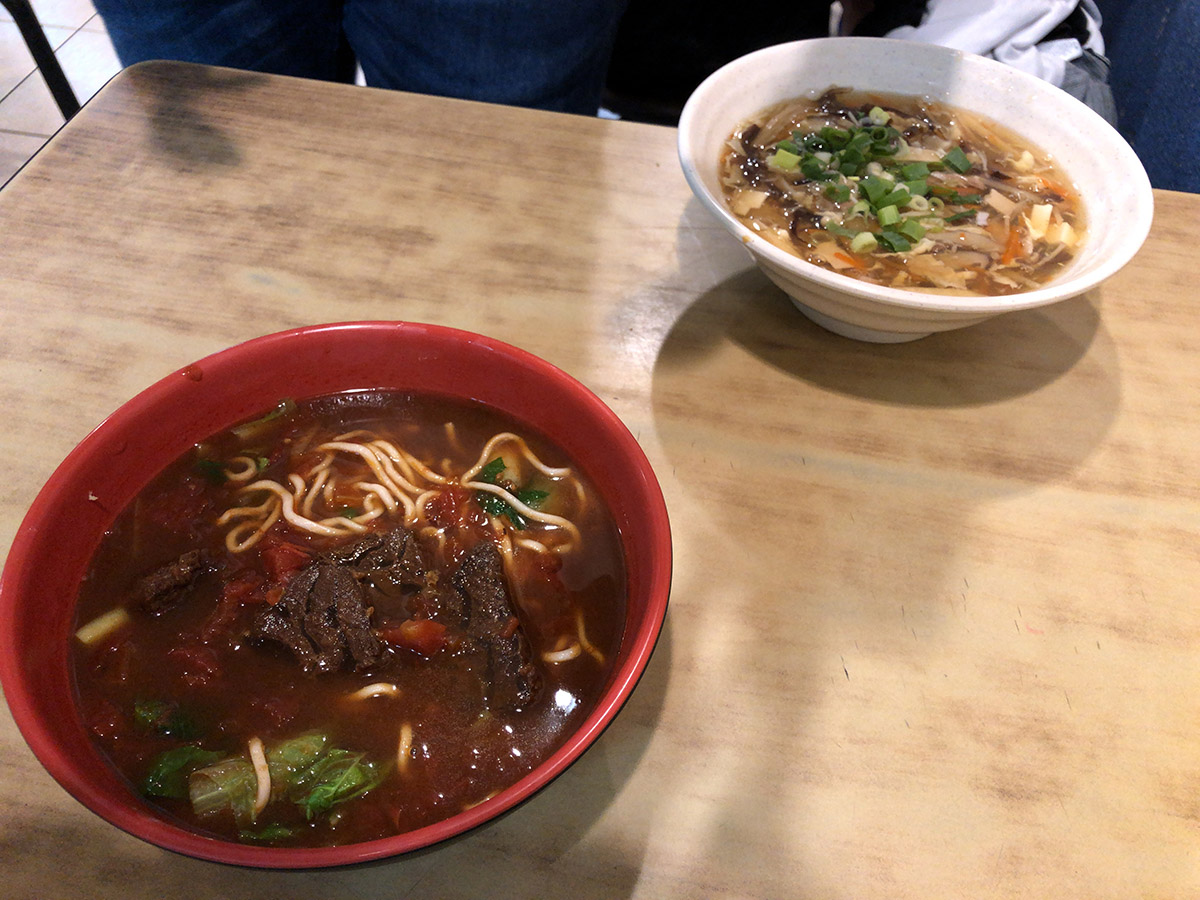 歩いて回っては買い食いをしたのだが、夜遅め+月曜日ということで、行って帰ると、行きにあった屋台は退けていたりして、少し寂し目。なので、今回は2品(と写真を撮り忘れたがエッグタルト)だけ屋台で買って、固定店舗の麺屋に入ってみた。