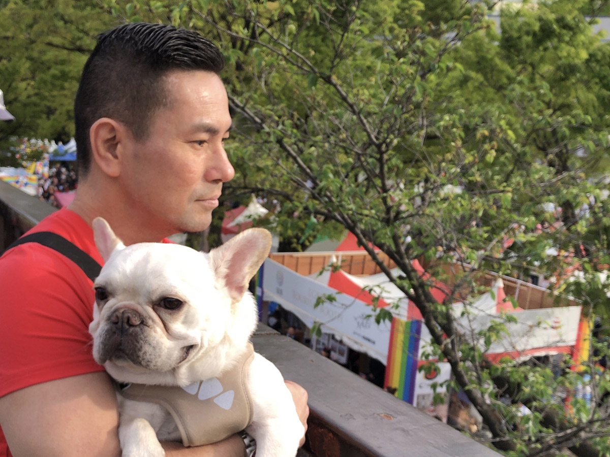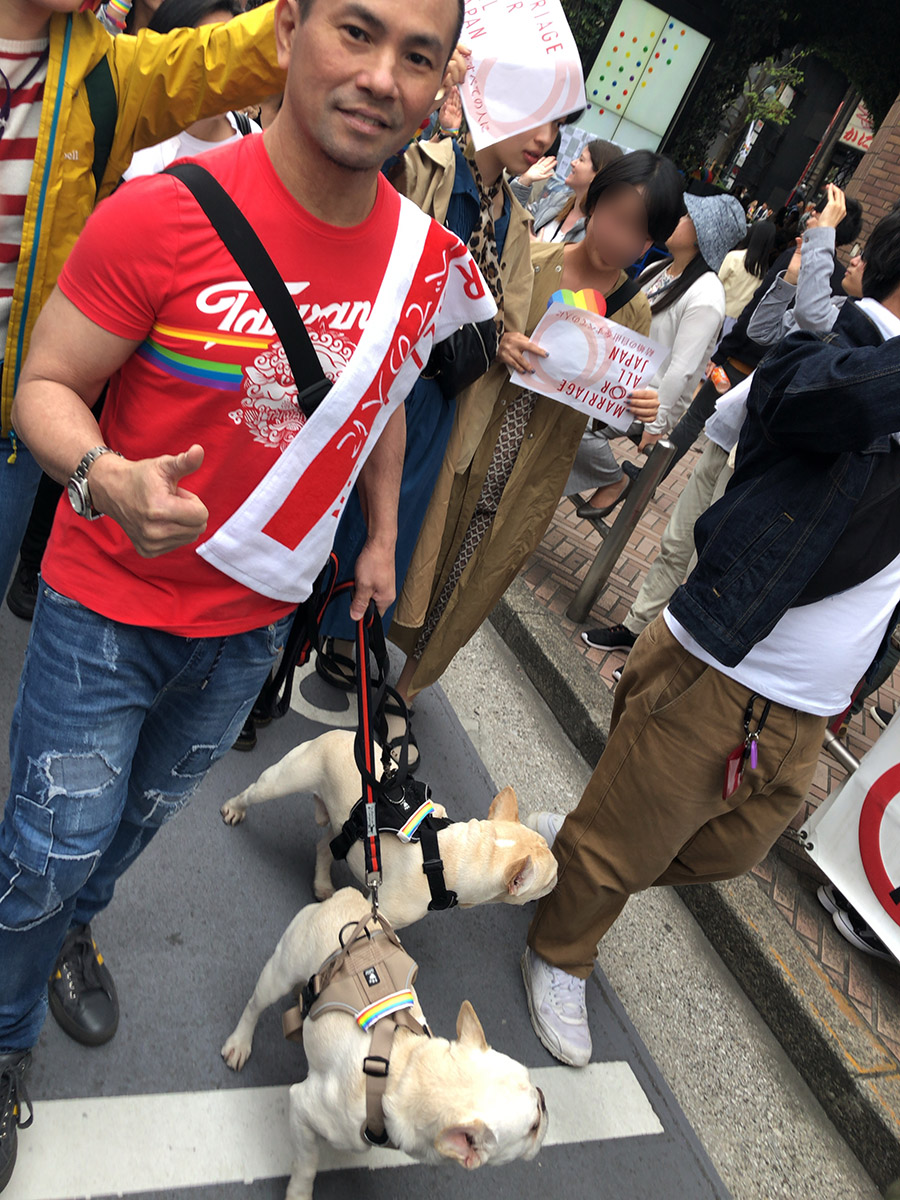 我々が歩いたのは、『結婚の自由をすべての人に (Marriage For ALL)』というフロート。同性婚の、というよりも平等婚の実現をアピールするフロートで、去年と同じく友人と集ったが、今年はさほど暑くなかったので、犬達を初めて連れて行進することができた。
