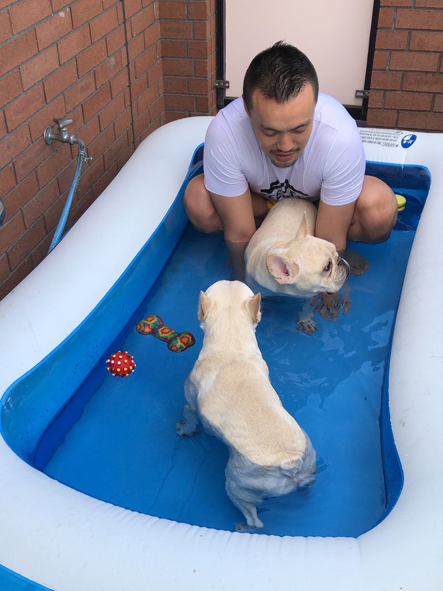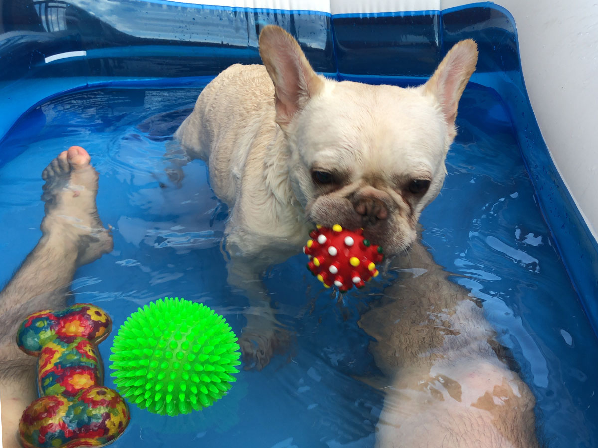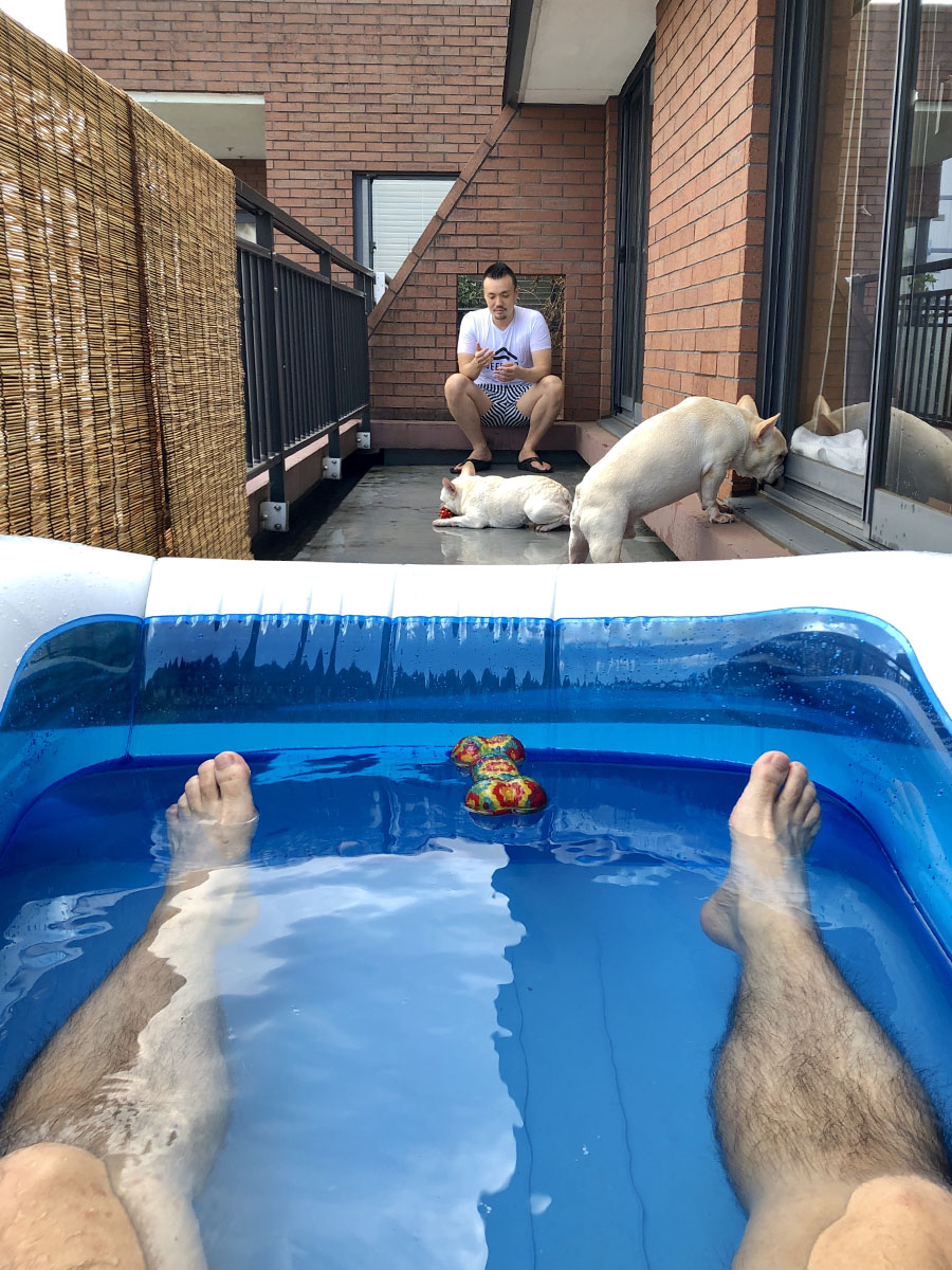 8月某日。暑いが、新型コロナの影響でほいほい出かける訳にも行かず、蜜を避けてと人は出先を選ぶが、東京の奥多摩も人が多いと聞いた。毎年のように行っている川遊びをするのは難しい。ではせめてうちで、と、ビニールプールを出して犬達と遊ぶ。
