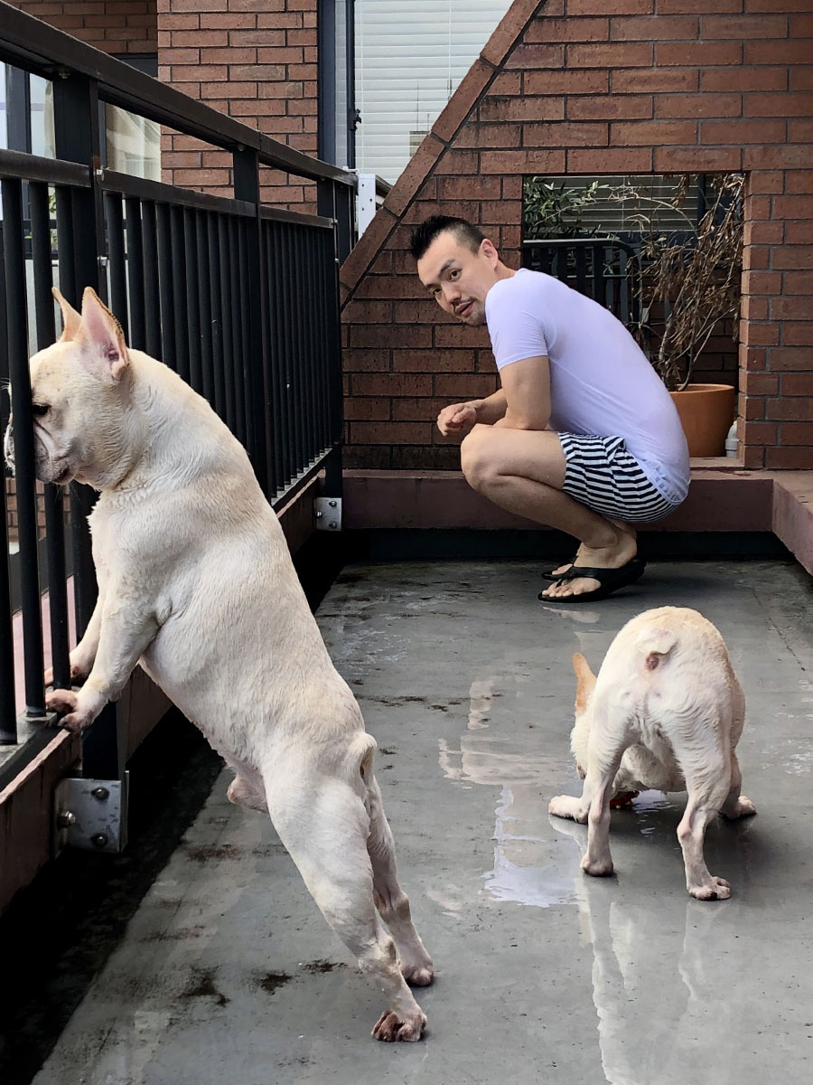 癌の手術を乗り切って、コロナ禍でも幸いに仕事の業績は悪影響をさほど受けず、こうして穏やかに過ごせるのも本当に幸運なことだ、とふと思う。普段、俺は犬達の写真を撮り、じょにおが犬達といるところも撮るが、俺が撮られることは少ないので、この機会に撮っておいてもらう。これも、後から振り返ればいい思い出になるだろう。