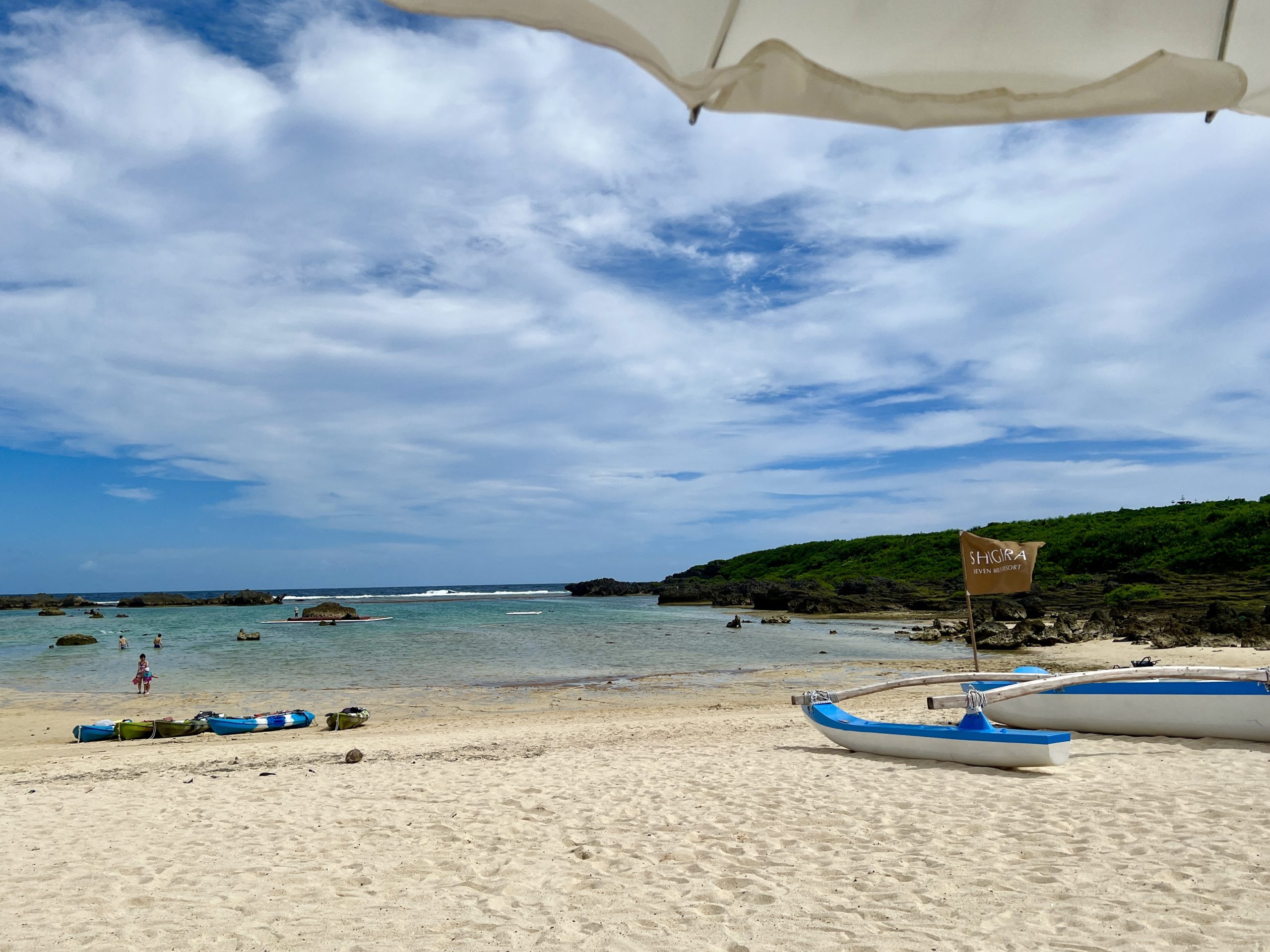 シギラビーチはホテル内のプライベートビーチではなく、公共のビーチだが、立地上、プライベート感が強い。ホテルのセンタービーチハウスがあり、ホテル貸出(有料)のパラソルとチェアも備えられている。